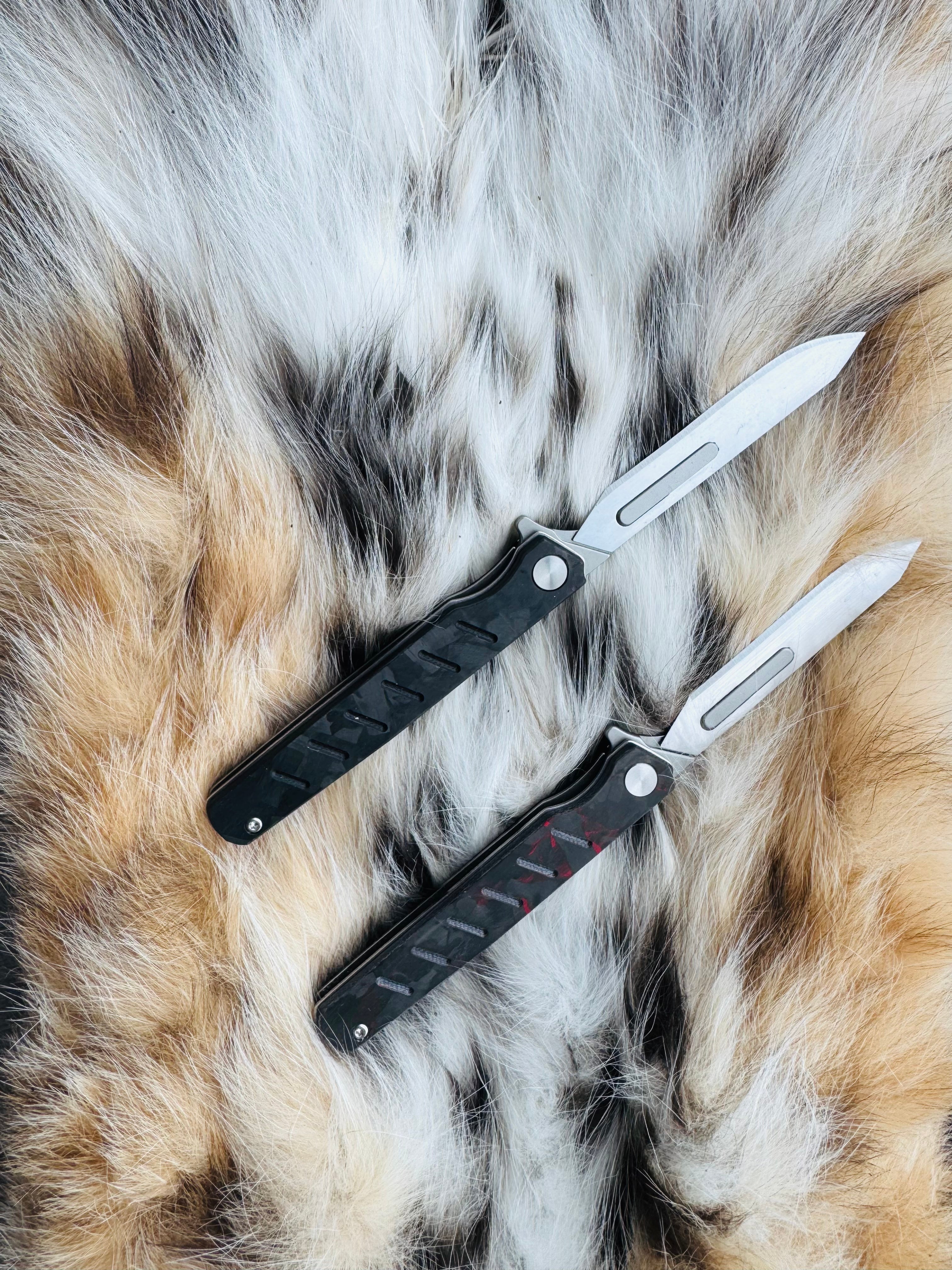 The Muley Skinner is the premier scalpel razor knife! With a zip up knife case capable of holding the knife and multiple blades. Every knife comes with 12 razor sharp interchangeable blades. Say hello to your new favorite skinning knife!